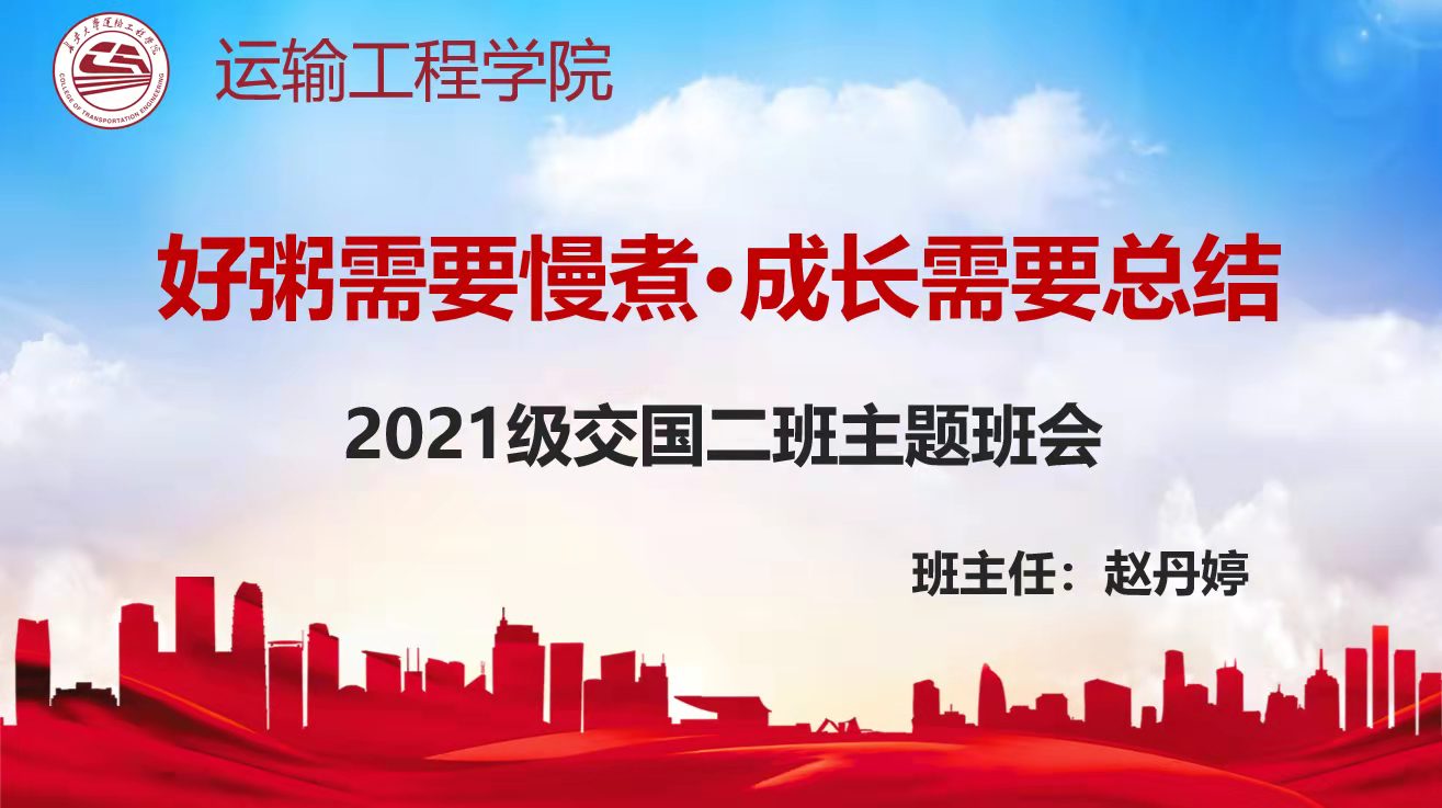 2022年1月10日晚,新葡京线上娱乐 2021级交通工程(国际工程班)二班召开“好粥需要慢煮,成长需要总结”线上主题班会,本次会议由班主任赵丹婷老师主持,交国二班全体学生参加。