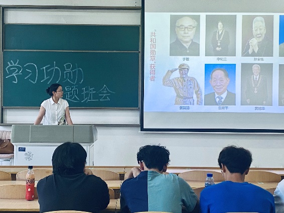 为加强新时代爱国主义教育,追忆时代洪流中各位功勋的峥嵘岁月,感受功勋人物“忠诚、执着、朴实”的人生品格和献身祖国人民的崇高境界,进一步激发广大青年爱党爱国的情怀,2022年5月23日在班主任张锐老师的主持下,新葡京线上娱乐 2020340205班于鸿远1104教室,举办了“学习功勋事迹 汲取成长力量”主题班会。