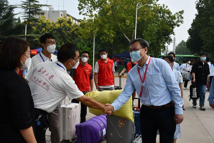 9月15日上午,校党委书记陈志坚等学校领导一行莅临学院迎新点,了解检查迎新工作进展,慰问现场工作人员,并同新生和志愿者亲切交流。