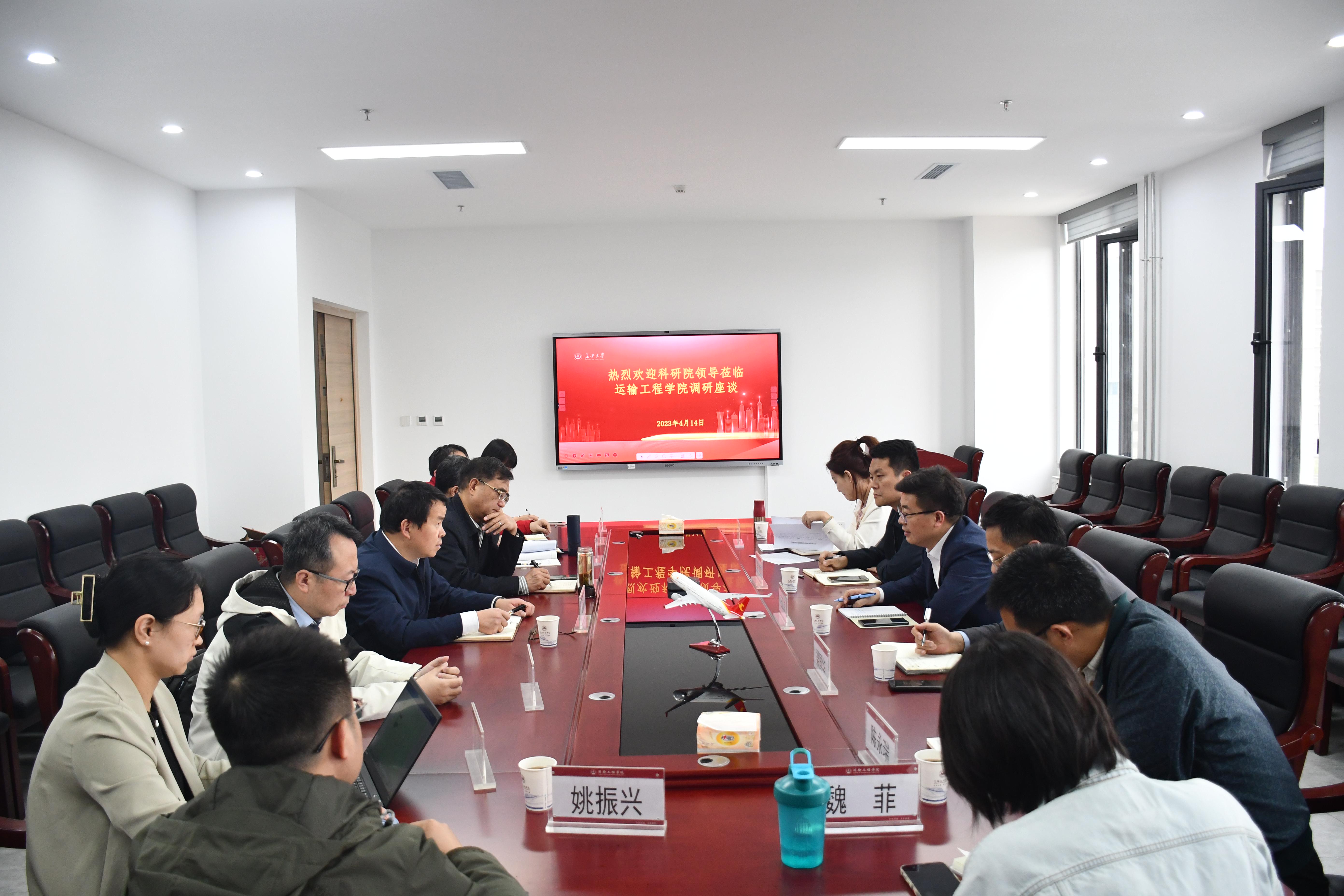 王亚琼院长首先说明此次调研的重点内容,包括《长安大学有组织科研实施方案》落实情况、学院科研项目管理情况、科研成果与奖励组织申报情况等。他希望学院从需求配合角度向科研院多提建议和意见,也希望借此机会充分了解学院、帮助学院。