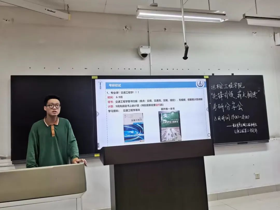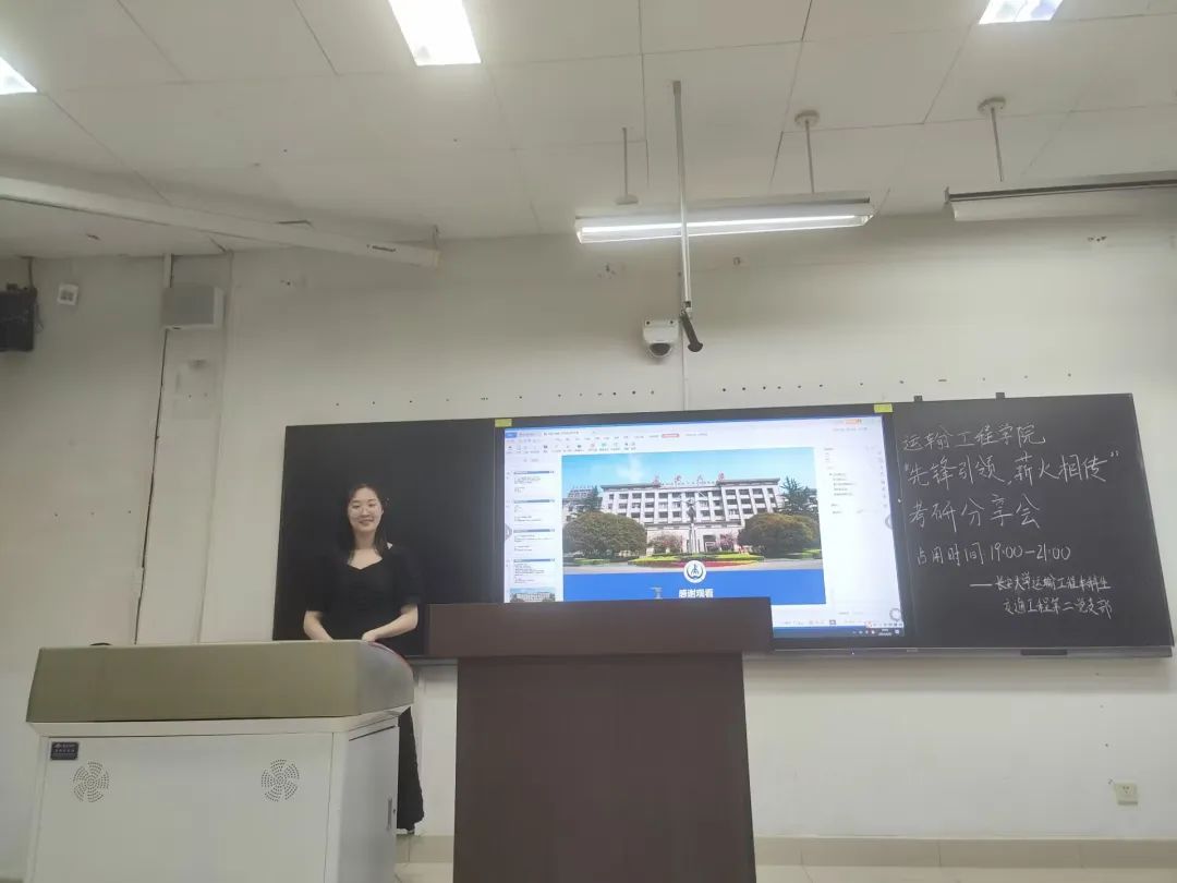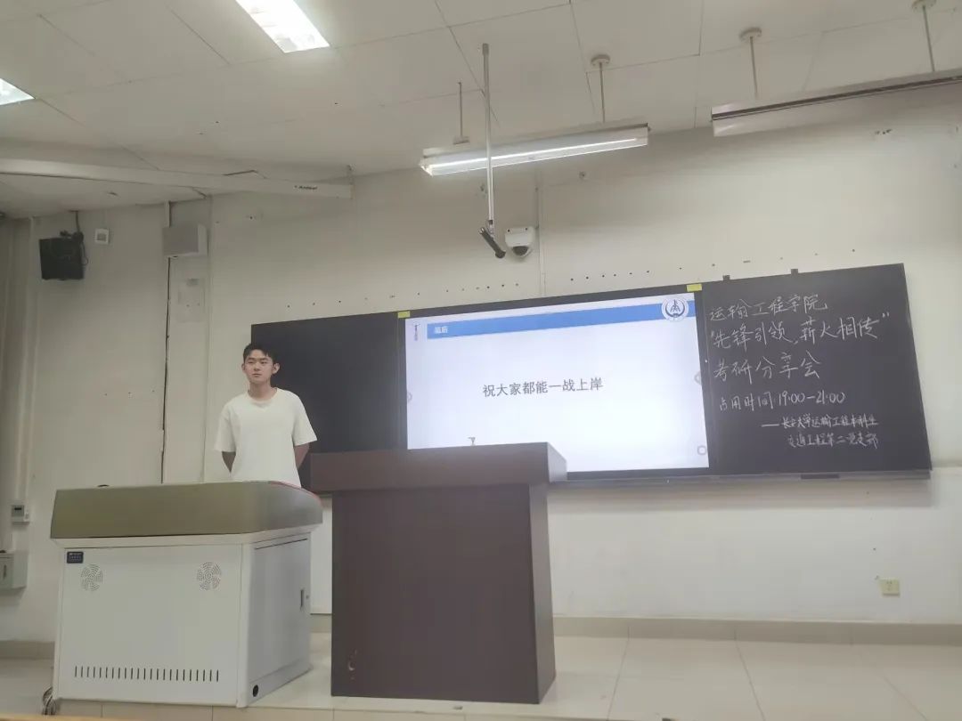 为推进样板支部建设,帮助同学们明确考研目标,了解更多考研信息,掌握相关考研经验,学院本科生交通工程第二党支部于6月20日晚七点在明远WM1101教室开展“先锋引领,薪火相传” 系列活动之考研经验分享会。分享会由杨贻凡主持,分别由考研至东南大学的吴桐、北京交通大学的孟迪康和长安大学的武怡君三名同志展开分享。