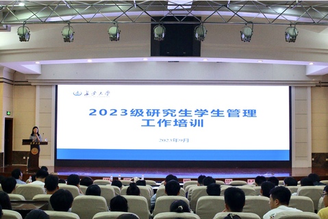 新葡京线上娱乐 2023级研究生开学典礼于9月21日晚在南校区学术交流中心一楼报告厅举行。出席典礼的有学院领导、各系、所负责人以及学院各科室负责人等。开学典礼由学院副院长王建军主持。