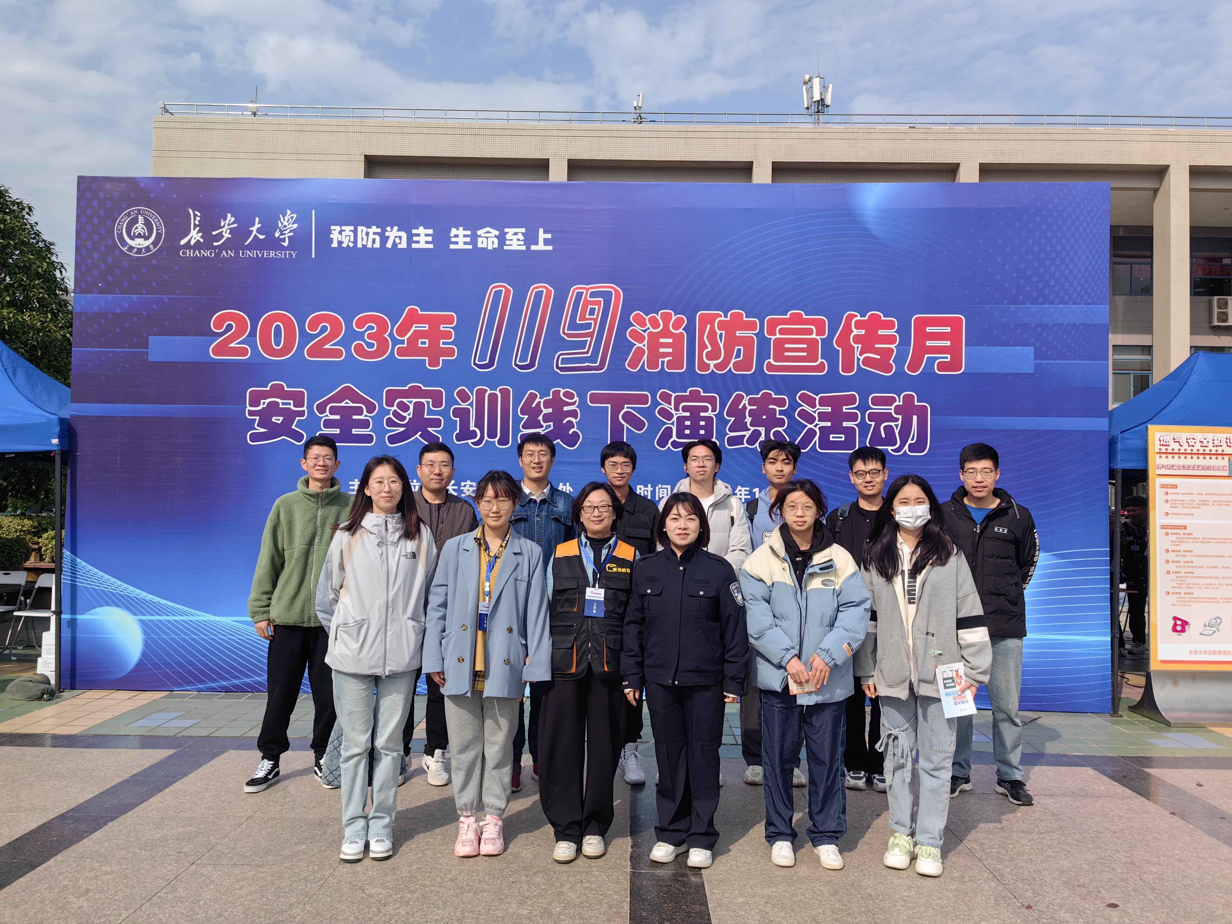 2023年11月9日是全国第32个“119”消防宣传日,长安大学2023年“119消防宣传月安全实训线下演练”活动在北校区树慧园广场举行。