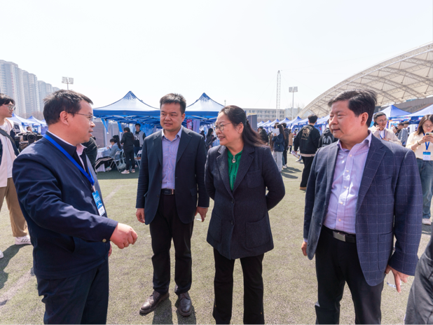 3月21日,长安大学2024届毕业生春季双向选择洽谈会在北校区朝晖体育场举行。双选会期间,校党委副书记、副校长彪晓红,校党委副书记黎开谊,校党委副书记、纪委书记陶继东,副校长朱杰君来到学院就业服务工作点,了解学院毕业生就业情况,指导学院就业工作的开展。