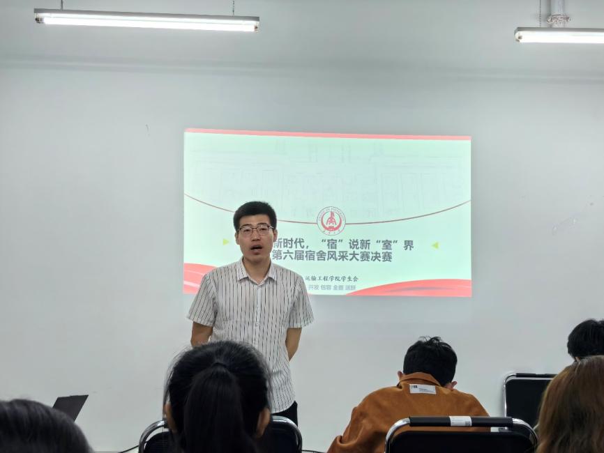 大赛最后,褚伟隆老师进行总结发言,他对所有参加比赛的宿舍表示认可和鼓励,参赛选手通过多种形式,展现了个人风采、团队氛围、宿舍文化。本次比赛为同学们提供了展示宿舍风采的机会以及相互学习和交流的平台,希望同学们能够继续保持良好的宿舍环境,在学生中起到模范带头作用,营造多彩宿舍风采。
