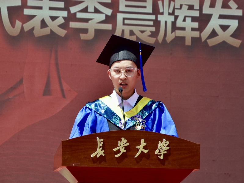 研究生毕业生代表李晨辉表示,感谢学院三年的培养,未来将带着母校及学院的期望和嘱托,以更饱满的热情和更坚定的信念,迎接未来的挑战和机遇,为社会发展进步和交通强国建设贡献力量!