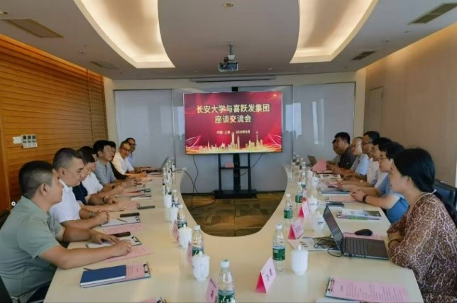 8月13日上午,此行第一站到上海城建数字产业集团进行座谈,董事长沈国红主持座谈会。沈国红对陶继东一行表示热烈欢迎,并介绍了上海城建数字产业集团的基本情况与其在城市基础设施建设与管理方面提供的先进解决方案和进行的探索。陶继东介绍了长安大学的基本情况、学校发展的新成就和未来发展的战略方向;他表示,学校将紧密围绕国家战略需求,不断优化和提升人才培养水平,致力于为交通运输行业培养更多高素质的专业人才。8月13日下午,到山西喜跃发集团(上海)进行座谈交流,会议由集团高级顾问李俊锋主持、常务副总经理金芳等参加。双方均表达了希望发挥各自优势,以校企合作需求为导向,积极探索学生实习实践、校企合作新模式等,持续拓宽产教融合渠道,为喜跃发集团输送更多专业人才,建立更广泛、更深入、更长久的合作。