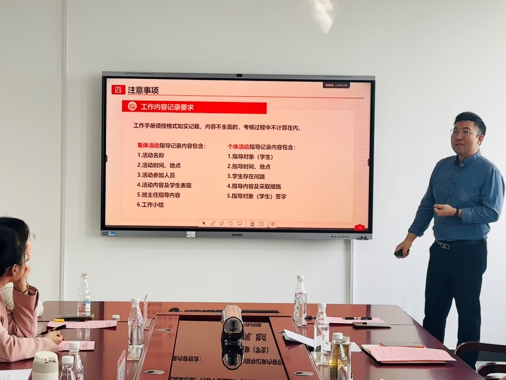 聘任仪式结束后,学生工作办公室主任董彬领学了《长安大学本科生班主任选聘管理办法》《新葡京线上娱乐 本科生班主任选聘管理办法》,重点从班主任的选聘程序、工作职责、管理考核等方面对政策文件进行了详细解读,并结合历年班主任工作开展实际,与本科生班主任进行了工作交流。