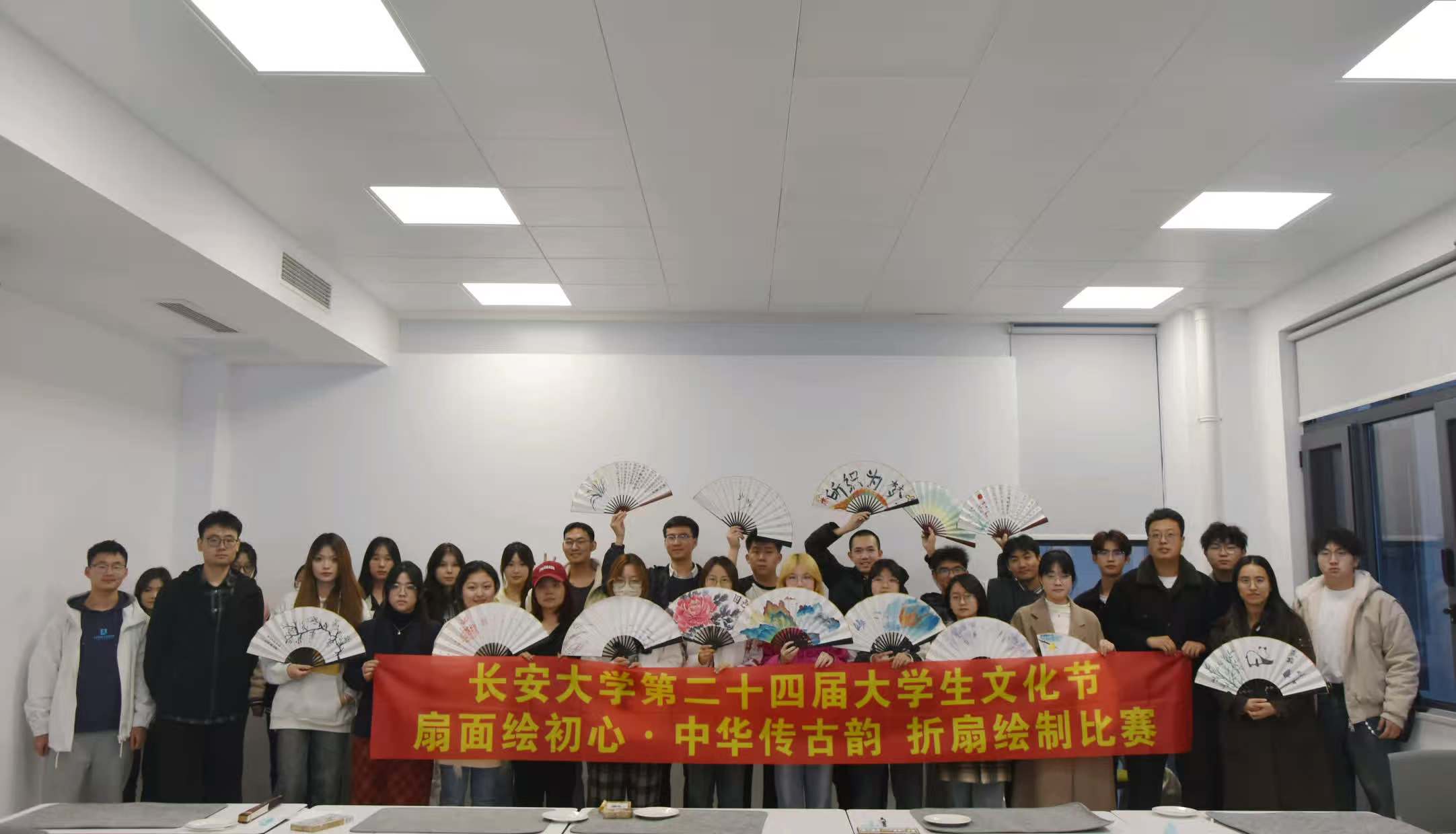 为进一步弘扬中华优秀传统文化,不断丰富大学生的校园文化生活,引导学生在动手实践中感受传统文化。2024年11月22日下午,长安大学第二十四届大学生文化节之“扇面绘初心,中华传古韵”折扇绘制比赛于长安大学鸿翔园社区二楼多功能厅顺利举行。