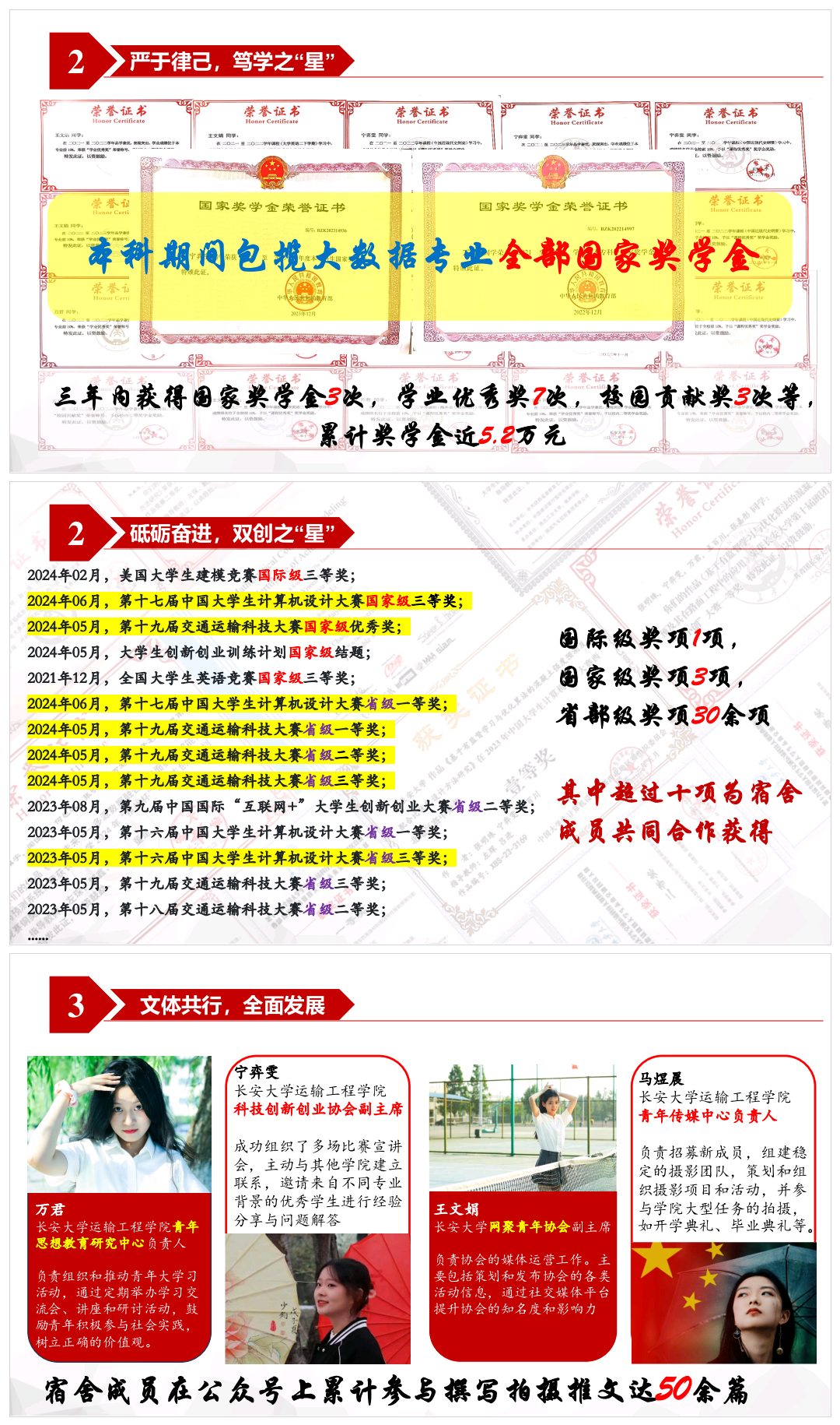 新葡京线上娱乐 在长安大学2023-2024学年长安大学本科生先进集体和先进个人(长大·标兵奖、长大·卓越奖)评选中,荣摘8星,其中包括5名优秀个人和3个先进集体。学院还有4名先进个人和集体获提名奖。