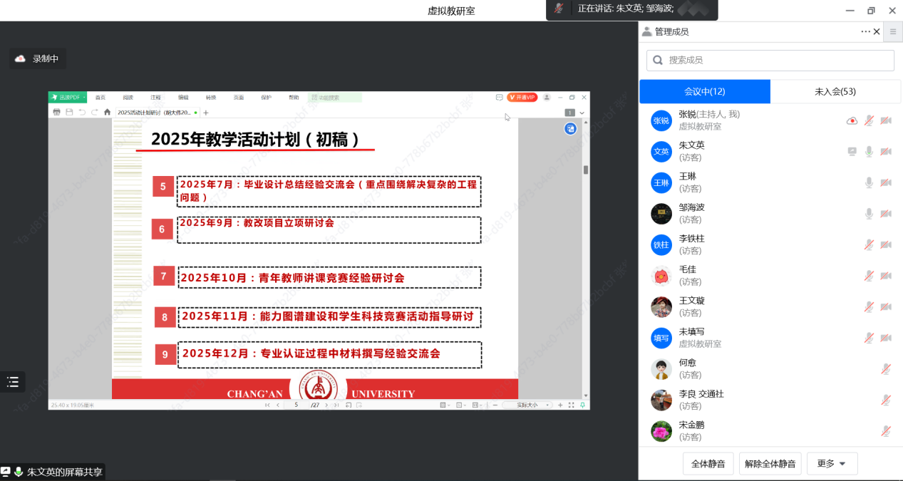 研讨会上,虚拟教研室秘书张锐老师总结梳理了2024年的历次教学研讨活动,朱文英老师介绍了2025年的工作计划。虚拟教研室负责人胡大伟教授组织与会成员深入学习了《教育强国建设规划纲要(2024—2035年)》,并结合专业建设探讨如何对接国家教育战略。王宁副院长对虚拟教研室的工作成效给予高度评价,并提出两点关键建议:一是建议继续凝练虚拟教研室的前期成果,提出可复制的经验推广给校内外其它专业;二是建议结合国民经济和行业的发展需求,持续升级交通运输专业的教学内容,以更好地适应高质量发展的要求。