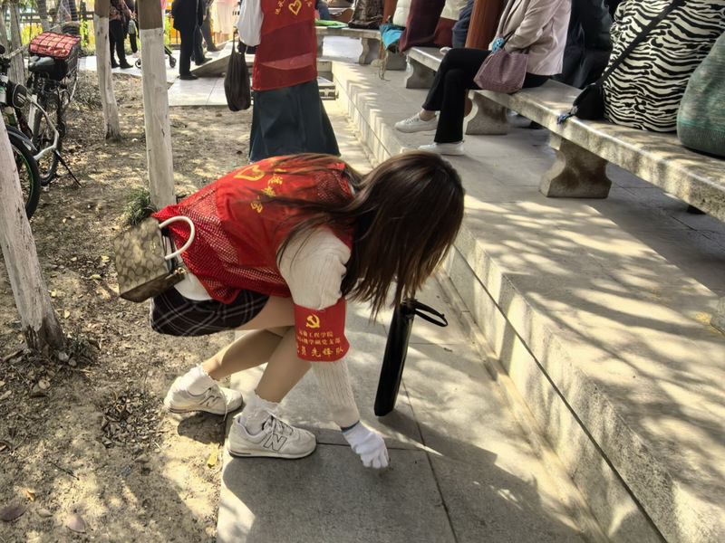 下午13时,学院2024级学硕党支部书记常筱彤简要介绍活动意义,强调“环保+党建”融合价值。青年党员们身着统一志愿者背心,分组开展环保行动。在丰庆公园及周边步道,志愿者们手持夹子、垃圾袋,捡拾塑料瓶、烟头等废弃物,并分类投放至指定垃圾桶。
