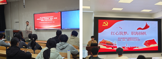 紧扣理论学习“着眼点”,夯实信仰基石。学院始终将思想武装作为学生党员培养的根本任务,致力于推动理论学习入脑入心。在本科生党支部中,支部书记兼任本科生党员的理论学习导师,构建本研学生党员理论学习交流的桥梁,平时依托联合党课、主题研讨等形式,持续深化本科生党员对党的创新理论的理解。此外支部书记立足自身研究生专业背景,创新设计“理论+学术”双轨研习会活动,系统组织各本科生党支部开展联学共建活动,帮助本科生形成“理论输入—问题研讨—学术延伸”闭环,切实提升本科生党员的综合素质和创新能力。